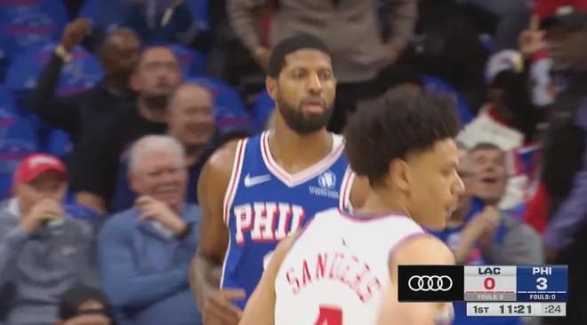乔治自己打得也是一般,他在第一节一上来似乎很猛,接到马克西的助攻命中三分球,在1分钟内连得5分。