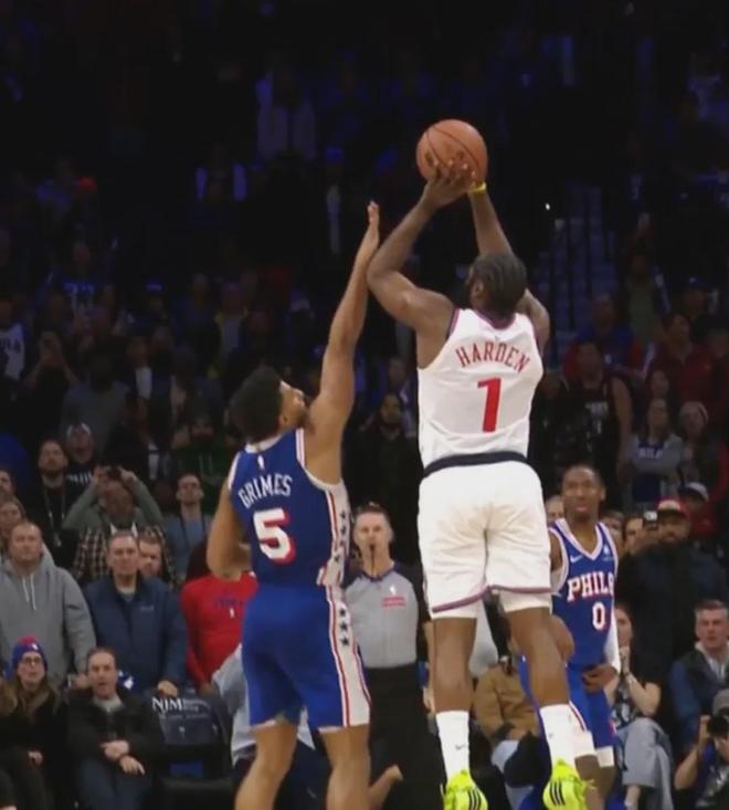 很多人都觉得格兰姆斯对哈登犯规了,不过NBA官方裁判报告称格兰姆斯是合理的干扰,没吹。